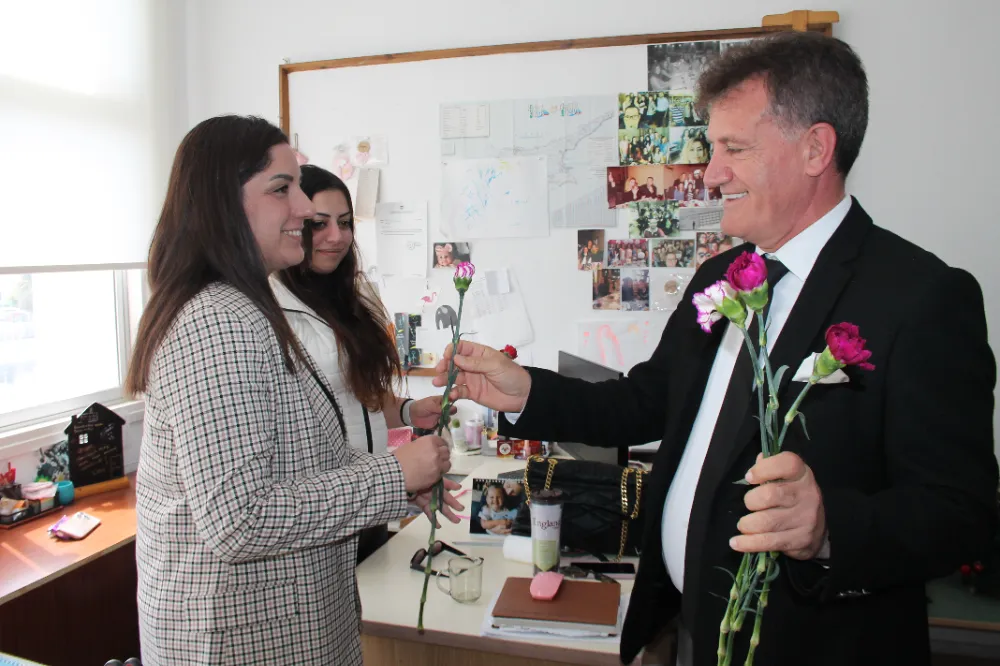 Bakanlık, Trafik Dairesi, Planlama ve İnşaat Dairesi ile Meteoroloji Dairesi'ndeki kadın çalışanlara gün dolayısıyla karanfil takdim etti.