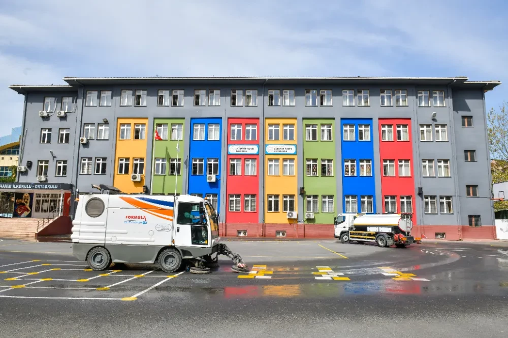 Esenyurt Belediyesi, ilçedeki okullarda temizlik seferberliği başlattı. Öğrencilerin daha hijyenik koşullarda eğitim görebilmesi için okul bahçeleri belediye ekipleri tarafından detaylı şekilde temizleniyor. Süpürge araçları ve su tankerleriyle yapılan çalışmalar sayesinde okul bahçeleri adeta baştan yaratılıyor.