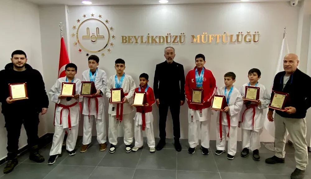 HABER / NEZİR KARAYÜN / BEYLİKDÜZÜ - Türkiye Karate Yıldızlar Ligi’nde önemli dereceler elde eden Beylikdüzü Diyanet Gençler Spor Kulübü sporcuları, antrenörleriyle birlikte Beylikdüzü İlçe Müftüsü Selami Sayın’ı makamında ziyaret etti. Başarılı sporcular için düzenlenen kabulde hem gurur hem de mutluluk vardı.