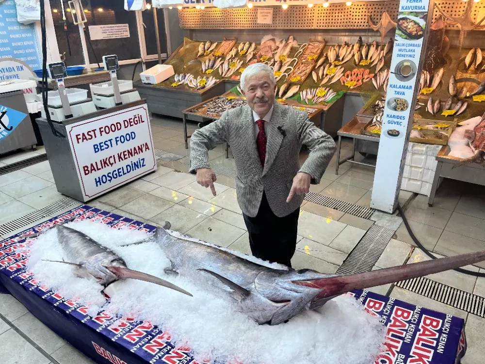 Yalova-Adalar açıklarında yakalanan ve boyları iki metreyi aşan iki kılıç balığı Balıkçı Kenan Tesisleri'nde görenleri hayrete düşürüyor. Balık bolluğunun ardından bu kezde kılıç bolluğu var diyen İstanbul'un ünlü balıkçısı Kenan Balcı: "Marmara Denizi açıklarında iki kılıç balığı yakalandı. Beylikdüzü'nde sergiliyoruz. İlk kez kılıç balığı gören vatandaşlarımız şaşırıyor. Büyük, küçük herkes hatıra fotoğrafı çektiriyor" diye konuştu.