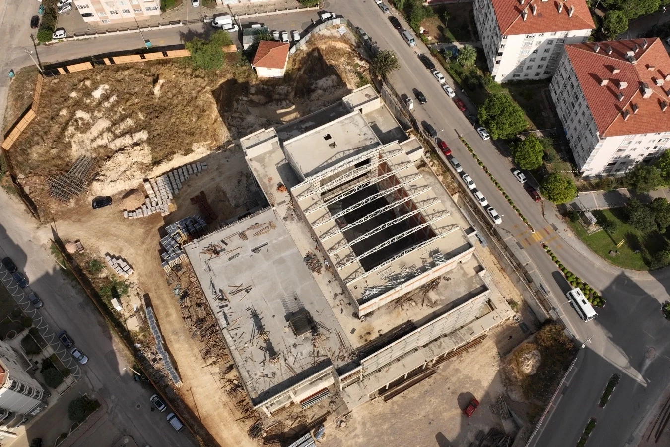 Bandırma Kültür Merkezi’nin yarım bırakılan kaba inşaatı son sürat devam ediyor. Elektrik tesisatlarının yapıldığı inşaatta yangın spring hattı montaj imalatları da sürüyor. Kütüphane alanı üzerindeki döşemenin demir kontrolünün yapılıp beton döküm imalatının gerçekleştiği binada cam giydirme cephe imalatının karkas montajına da başlandı. Önümüzdeki aylarda kaba inşaatının bitirilmesi hedeflenen binada eş zamanlı olarak iç tesisat işleri de yürütülüyor.