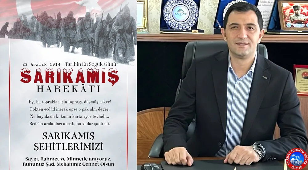 03-04 Ocak 2025 Tarihinde yapılacak Sarıkamış Dramının 1110. Yılında "Türkiye şehitleriyle yürüyor" anma etkinliği öncesi Serhat Birikim Gazetesine açıklamada bulunan Selim Belediye Başkanı Barış KOÇ; Allahuekber ve soğanlı dağlarında vatan için canlarını seve seve veren 90 bin şehidimizi rahmetle hürmetle anıyorum