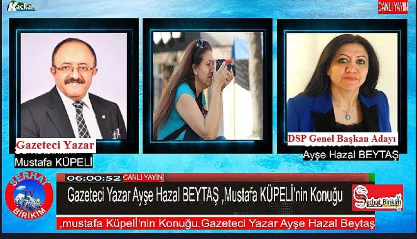 Gazeteci Yazar Mustafa Küpelinin hazırlayıp sunduğu SERHAT GÜNDEM Programına konuk olacak, DSP Genel Başkan adayı Ayşe Hazal BEYTAŞ, 14 Mayıs’ta yapılacak Genel seçimler öncesi DSP’de yaşanan istifaları tartışmalar masaya yatırılacak